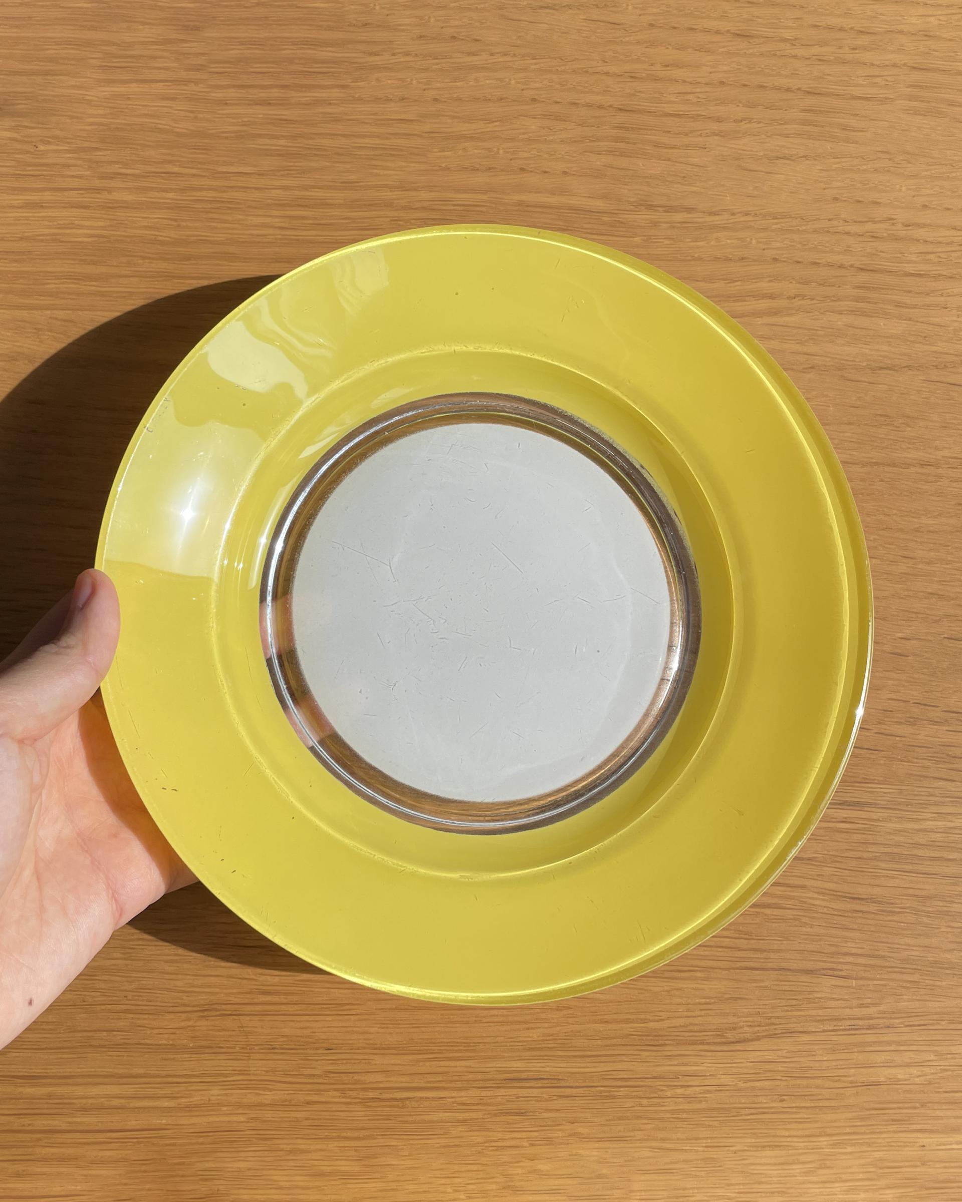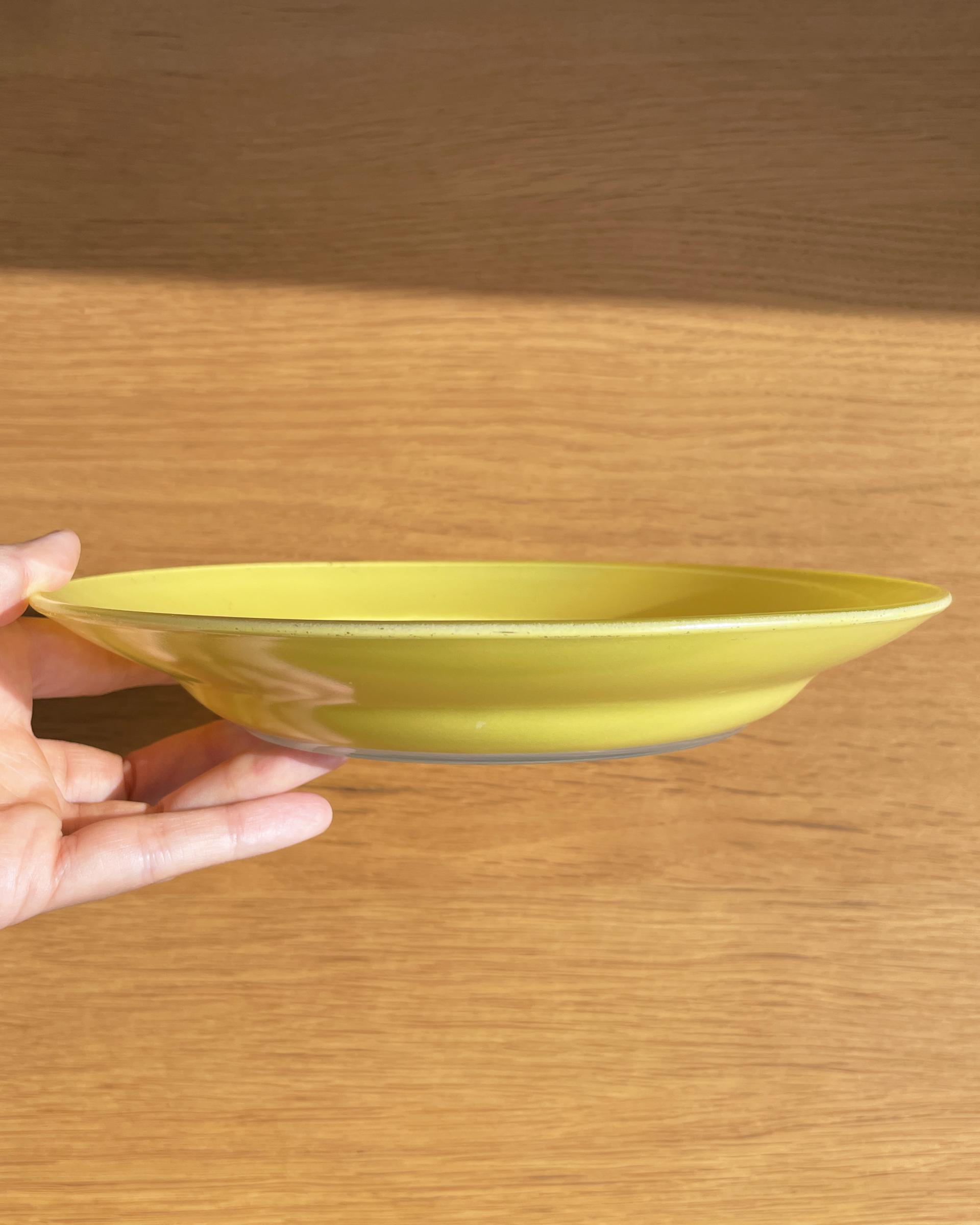프랑스 Duralex 사의 빈티지 유리 파스타접시 입니다. 산뜻하고 귀여운 노란색이 돋보입니다. 중앙이 오목한 형태로 실용성 있는 크기입니다.