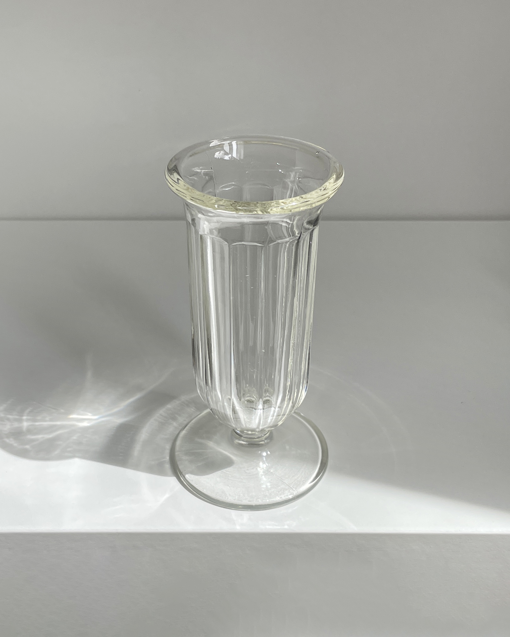 클래식한 형태의 빈티지 화병입니다. 위로 갈수록 살짝 넓어지는 튤립형태의 화병으로 세로 방향의 패턴이 빛을 받을때 아름답게 반사됩니다, 하단의 둥근 받침대가 있어 균형감, 안정감이 있습니다. 테이블 위에 소량의 꽃을 장식하기 위한 화병으로, 서재에 연필 꽂이로 활용하기 좋은 크기입니다.
