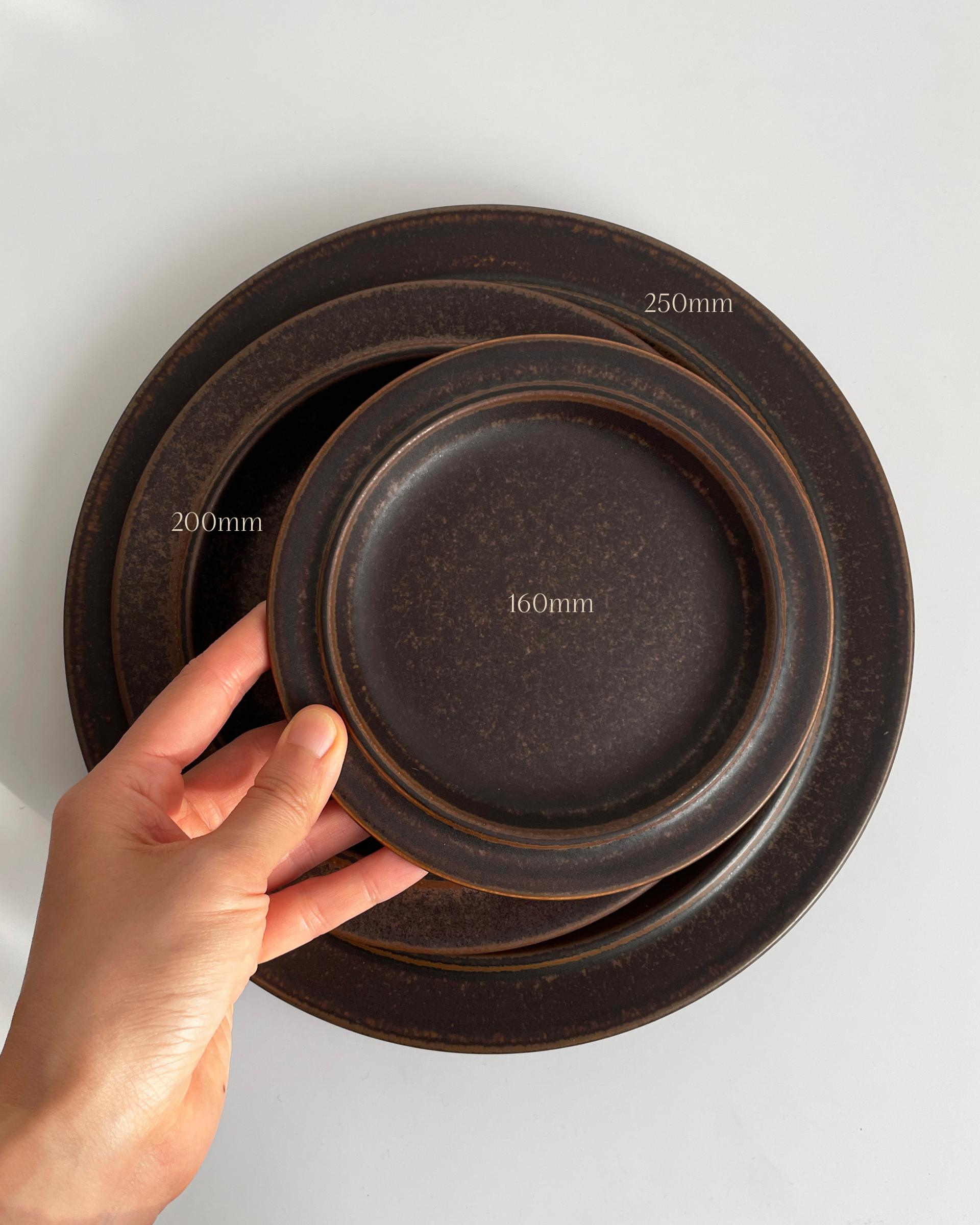 두툼한 스톤웨어로 만들어져 내구성이 뛰어나며, 어두운 갈색과 검은빛이 감도는 무광의 유약으로 처리되어 있습니다. 자연스러운 스팟 무늬가 투박하면서도 절제된 매력이 있습니다. 상품마다 컬러의 톤과 무늬가 조금씩 다르니 구매시 이 점 꼭 참고해주세요.