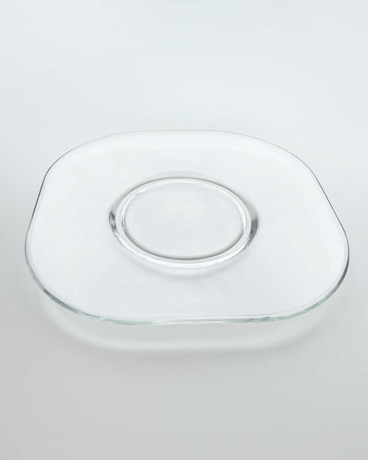 20세기 중후반 이탈리아의 산업디자이너 Joe Colombo 의 Arno 시리즈 빈티지 플레이트 입니다 :) 빛에 따라 은은한 반사가 생기는 맑은 유리 재질과 아름다운 테두리의 곡선이 매력적입니다.
