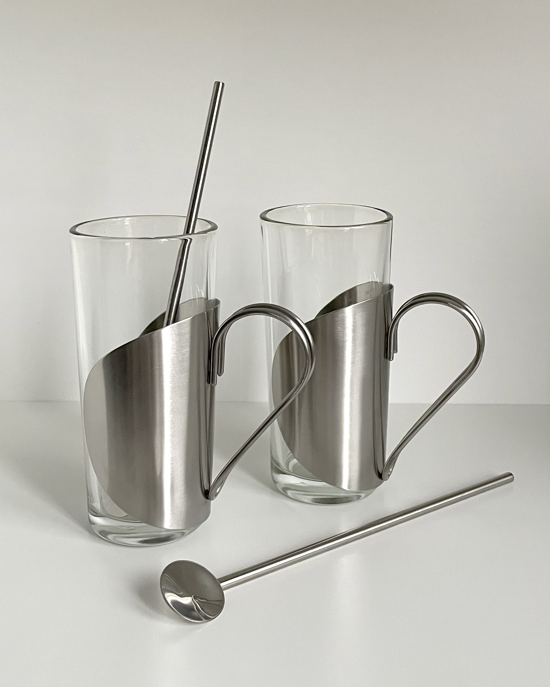 Vintage Glass Cup with Stainless Steel Holder & Muddler