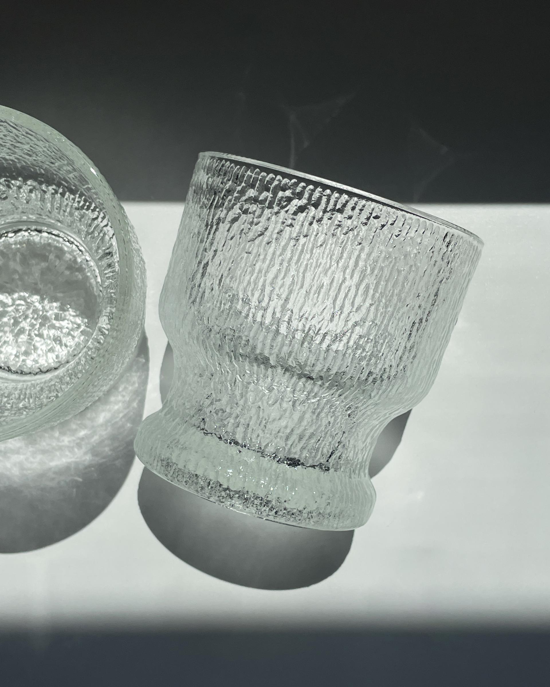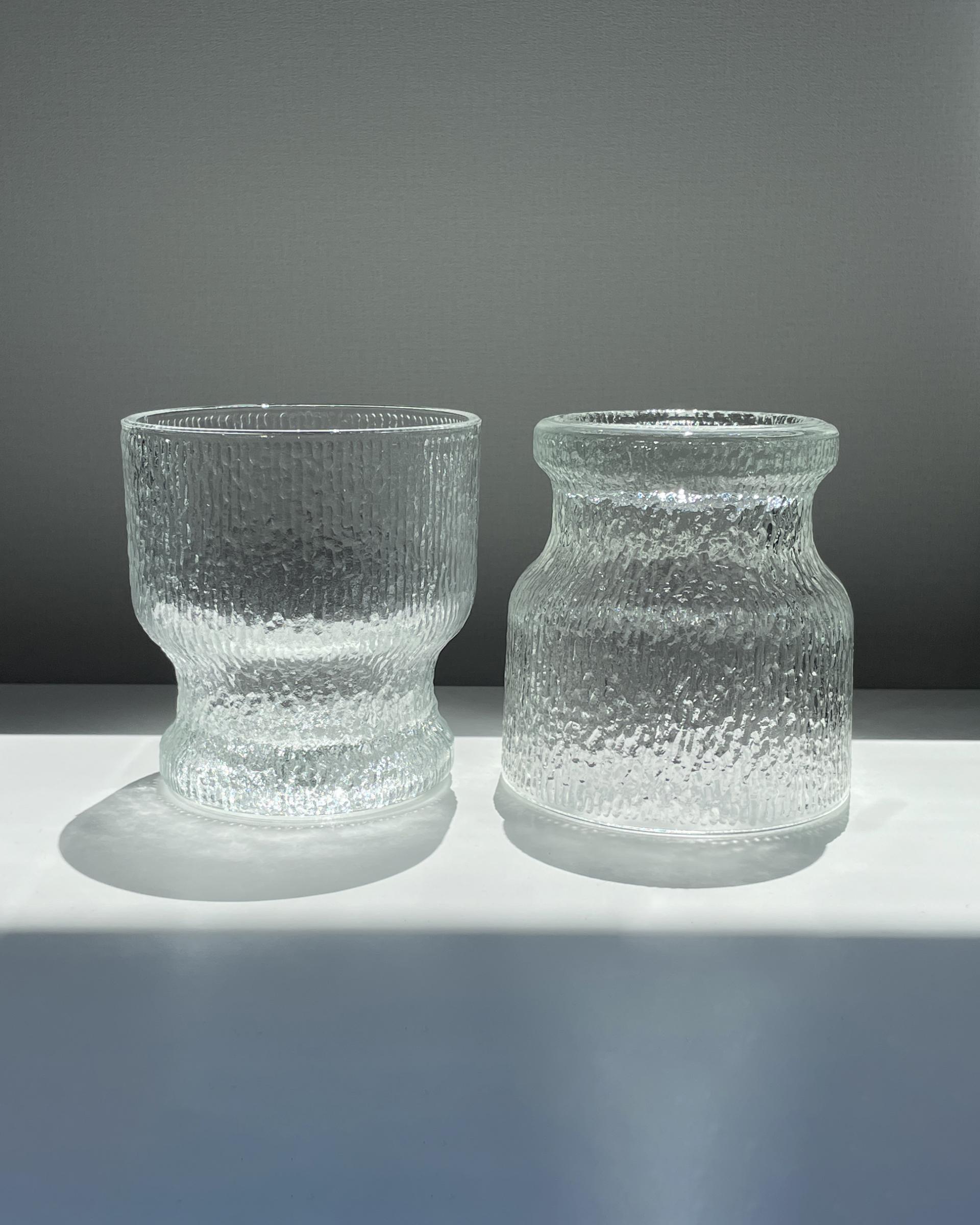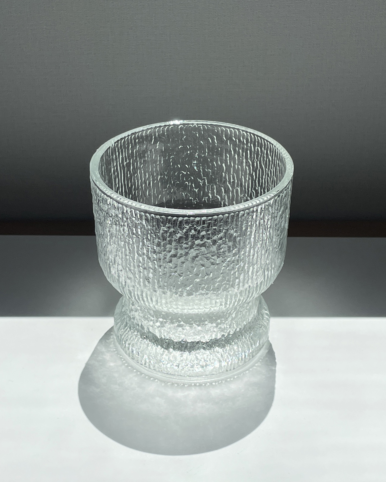 미국 인디애나 글라스 컴퍼니의 빈티지 글라스입니다. 얼음을 조각한 것 같은 느낌을 주는 아름다운 텍스쳐가 매력적입니다. 넉넉한 용량으로 활용도가 높은 글라스입니다.