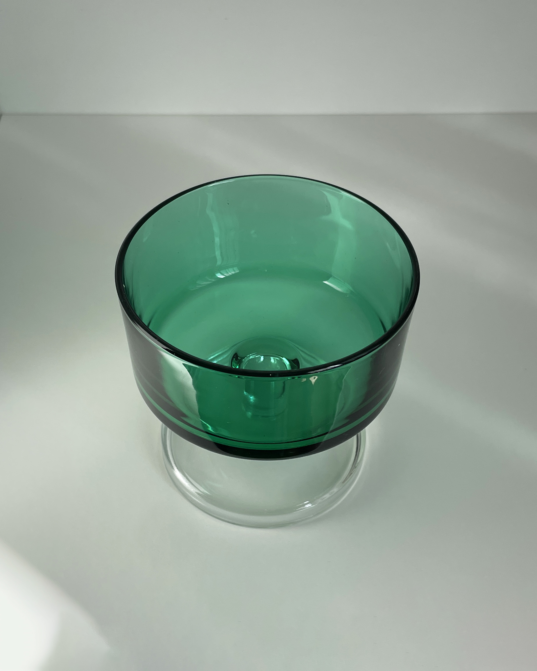 프랑스 Luminarc 사의 Cavalier 시리즈 빈티지 디저트 글라스입니다. 투명한 손잡이에 초록빛 잔의 컬러가 매력적입니다. 다양한 용도로 활용하기 좋은 크기입니다.