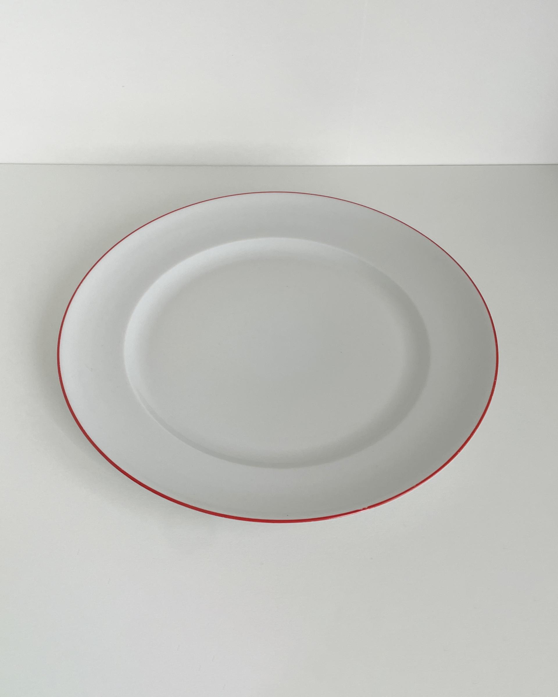 헝가리 Alföldi Porcelán 사의 빈티지 접시입니다. 얇은 붉은색 테두리와 차분한 하얀색의 조화가 단정한 매력을 보여줍니다.