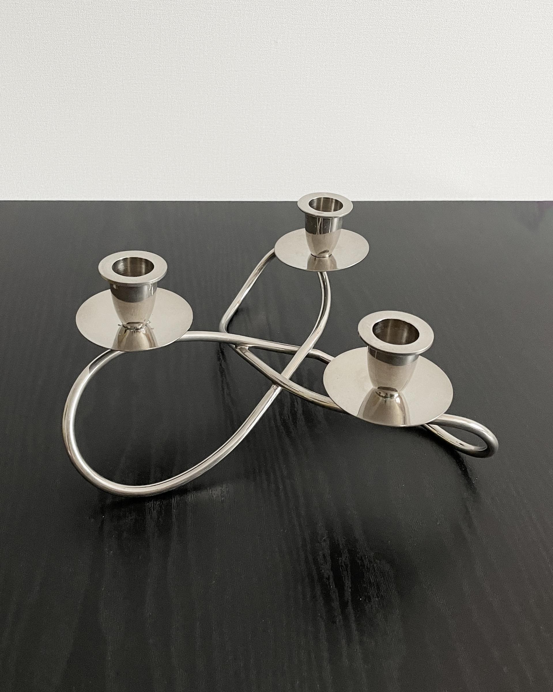 스테인리스 스틸 재질의 빈티지 촛대입니다. 하나의 선이 부드러운 곡선을 그리며 이어지며 자유로운 느낌이 매력적입니다. 촛대로 사용하지 않아도 자체로 아름다운 오브제 역할을 합니다.