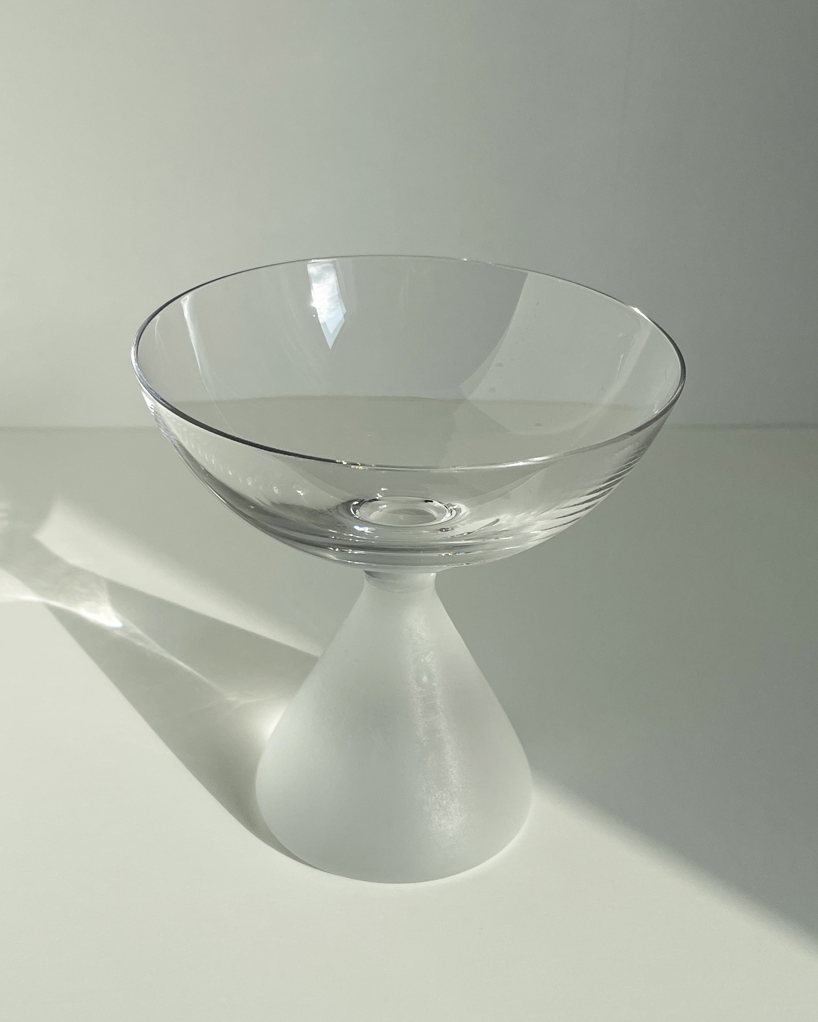 스웨덴 Ekenäs 사의 EKE1 시리즈 빈티지 샴페인 글라스입니다. 투명하고 얇은 유리잔과 안개가 낀 듯한 반투명의 묵직한 손잡이의 조화가 아름답습니다. 찾아보기드문 빈티지 시리즈입니다.