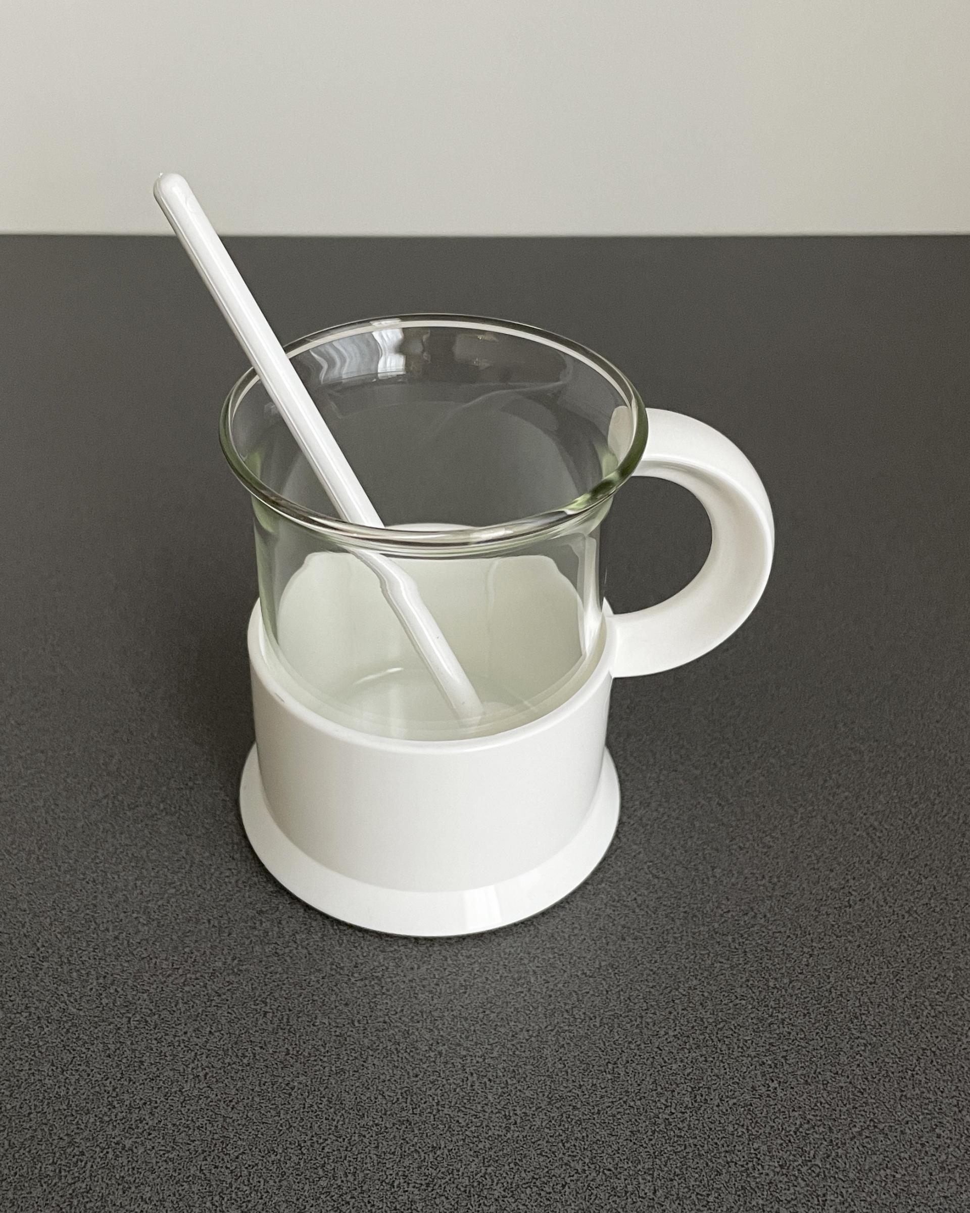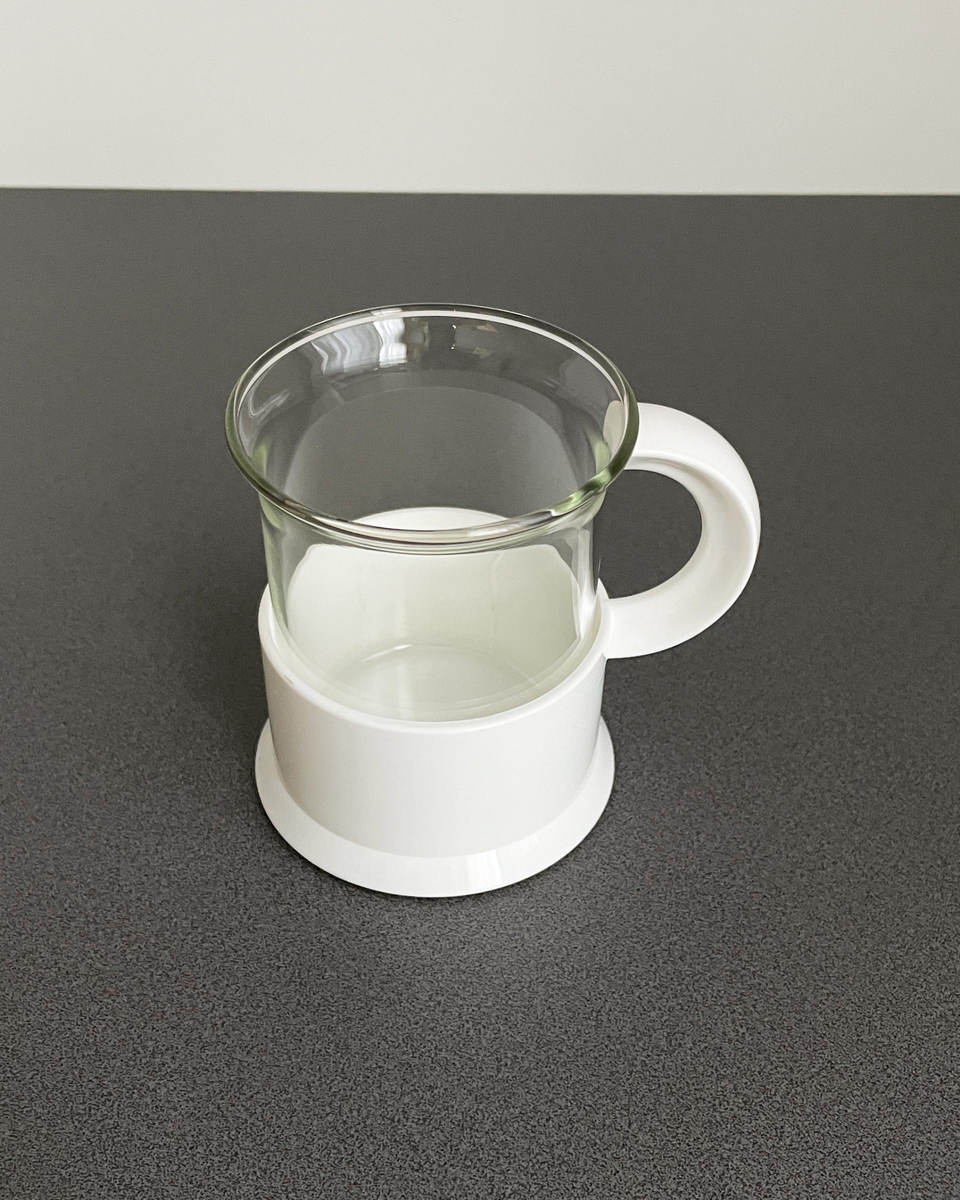 Vintage Bodum Archi Glass Cup with White Plastic Holder