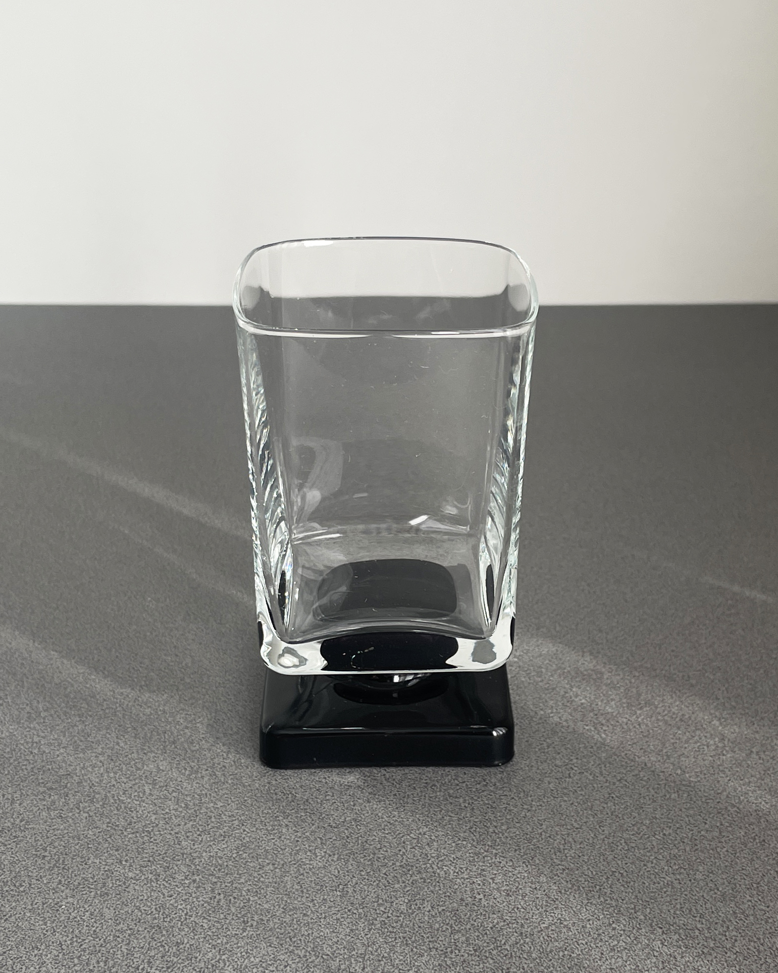 이탈리아 Luigi Bormioli 사의 Monet 시리즈 빈티지 와인 글라스입니다. 검은색 사각형 손잡이와 각진 글라스의 형태가 매력적입니다.