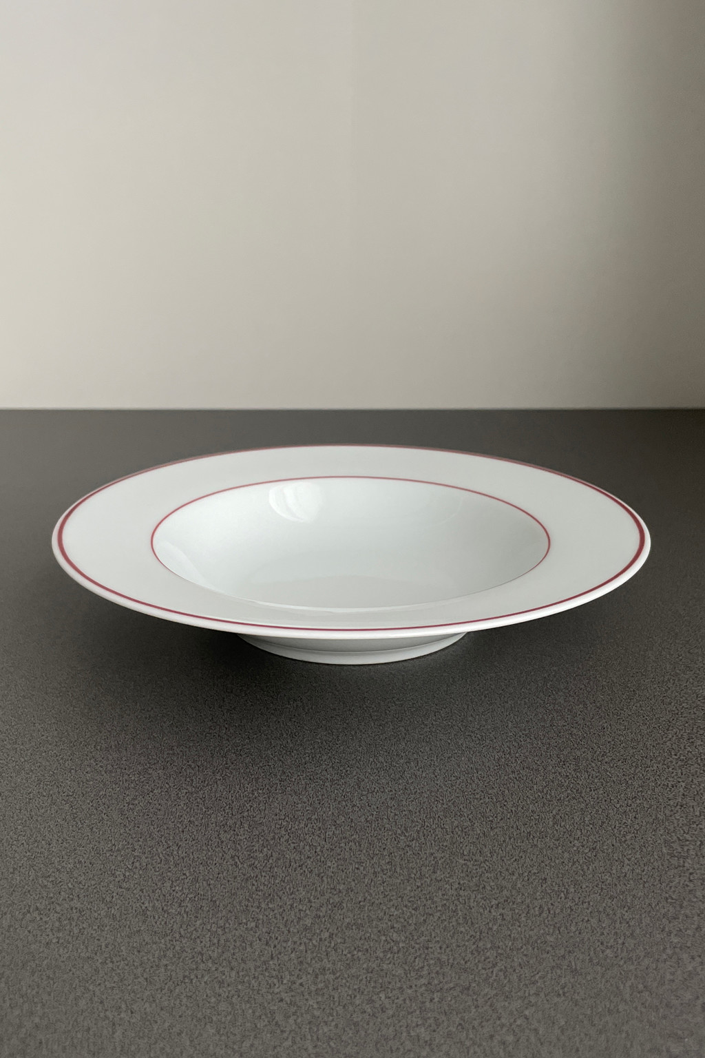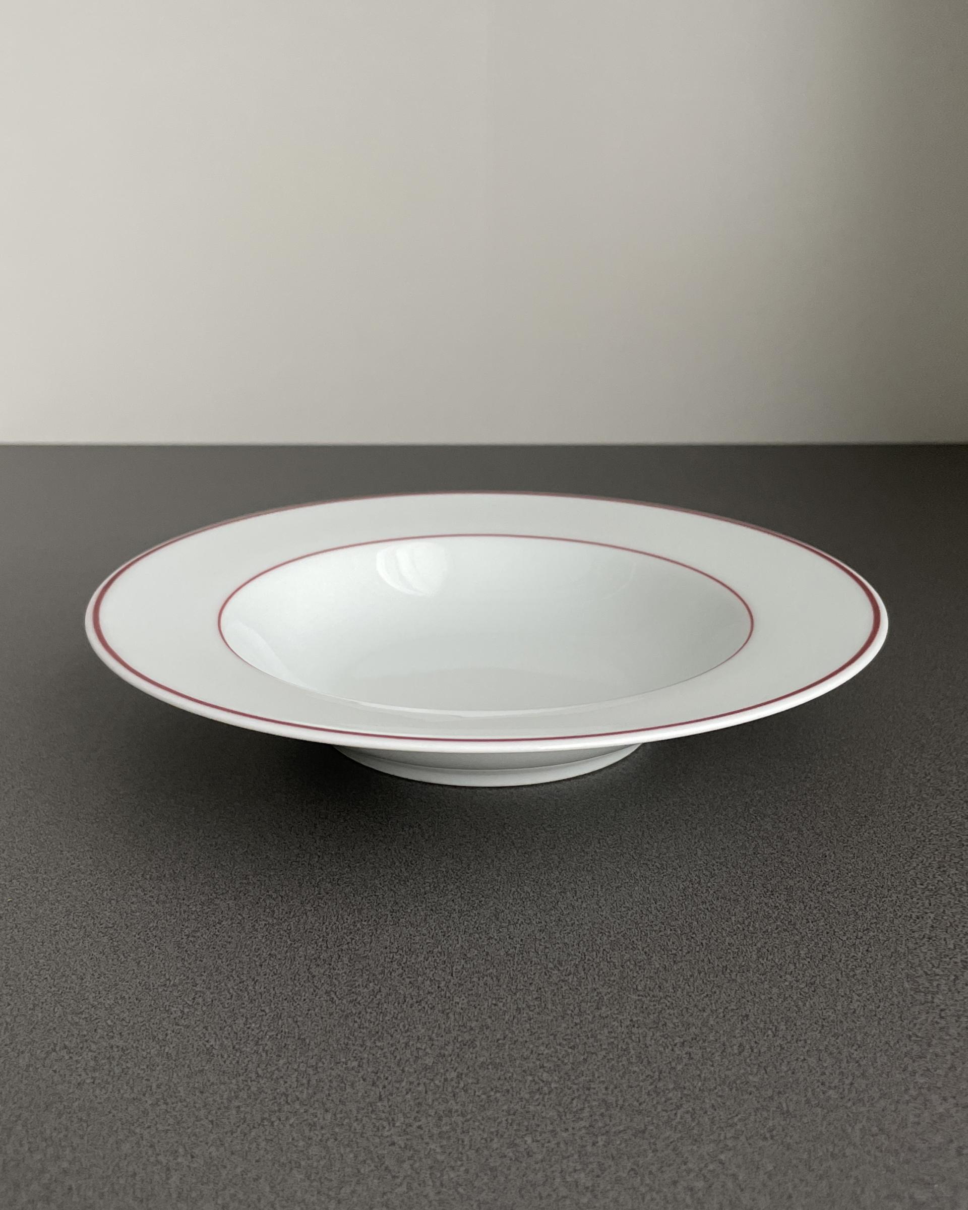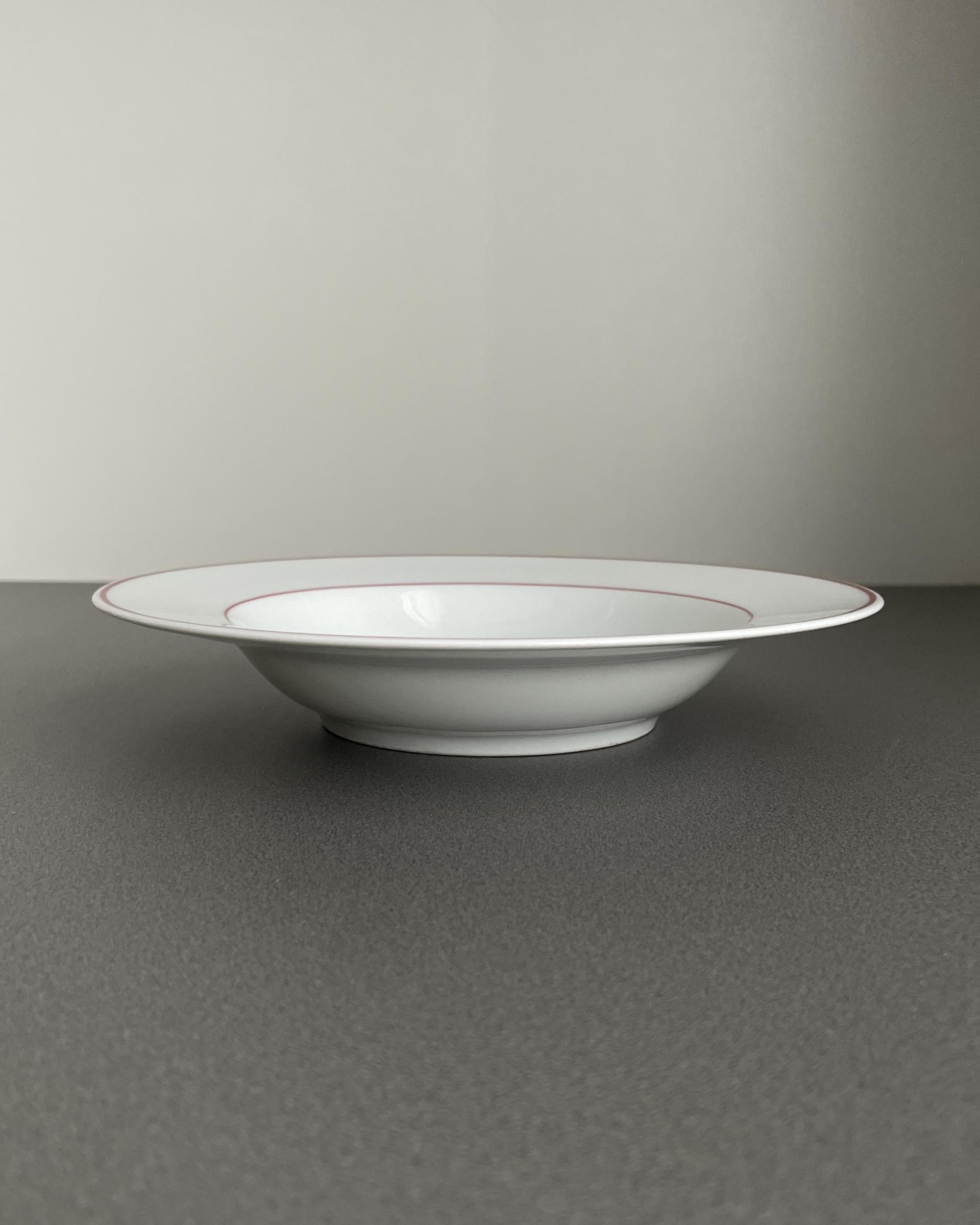 프랑스 Royal Limoges 사의 빈티지 수프 보울입니다. 차가운 톤의 흰색 바탕에 깔끔한 붉은색 테두리 디자인이 매력적입니다.