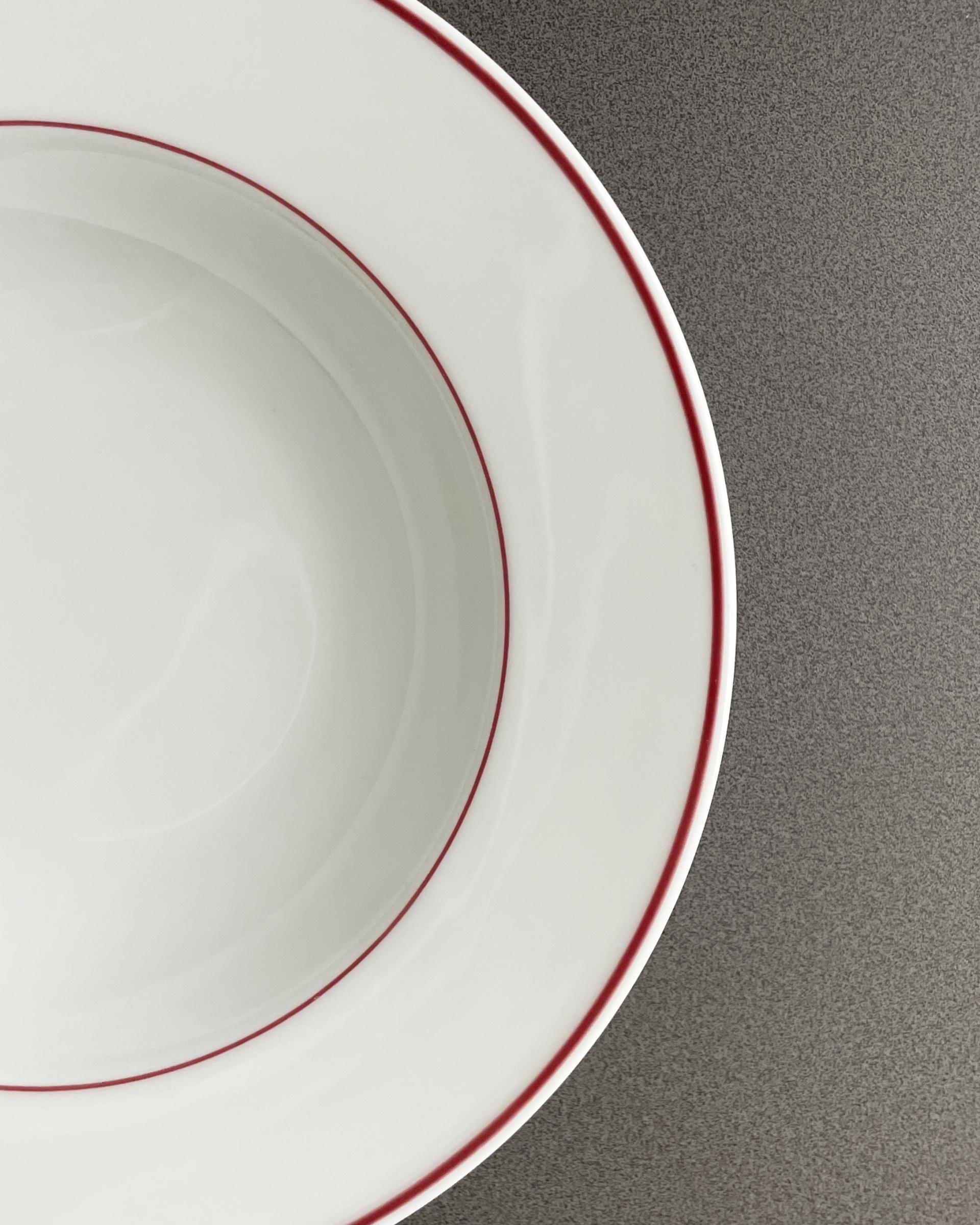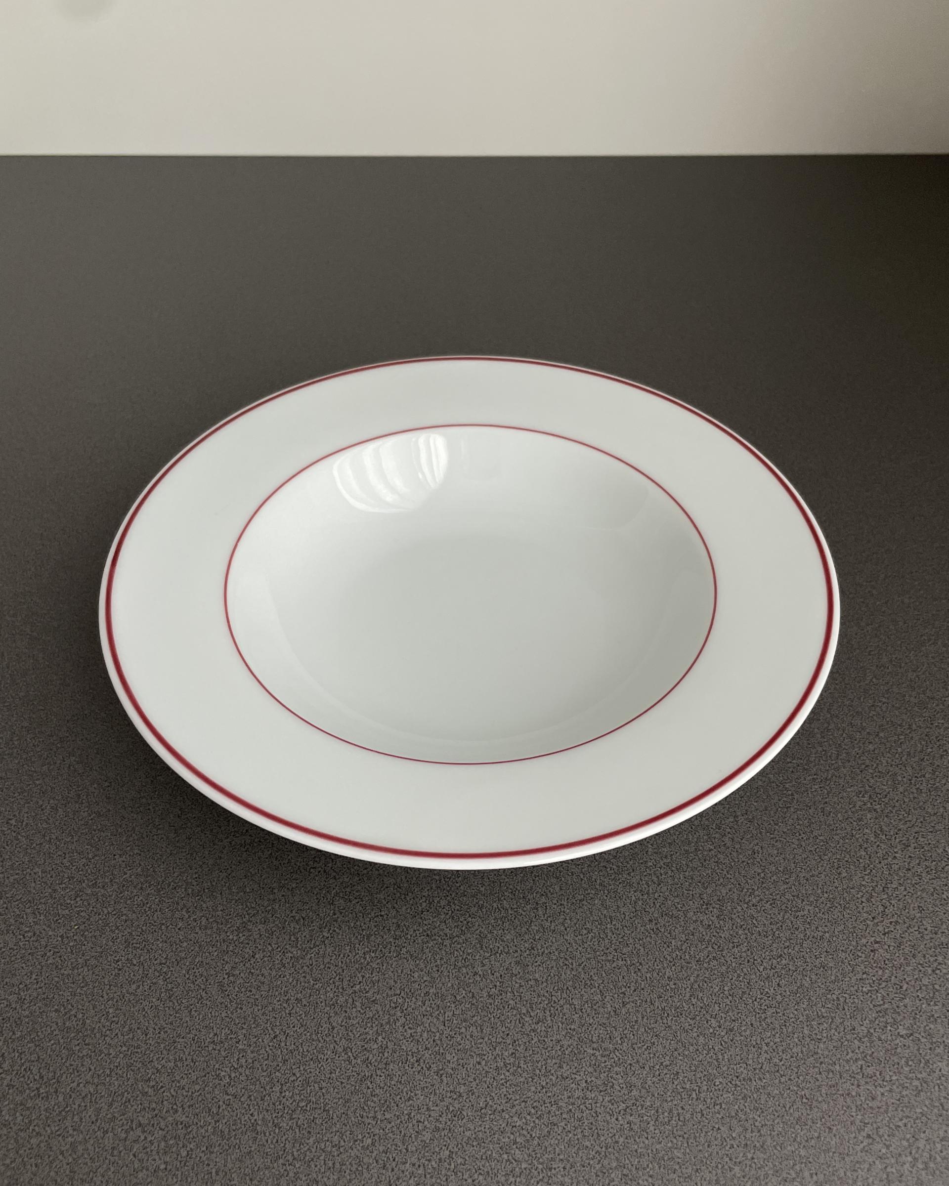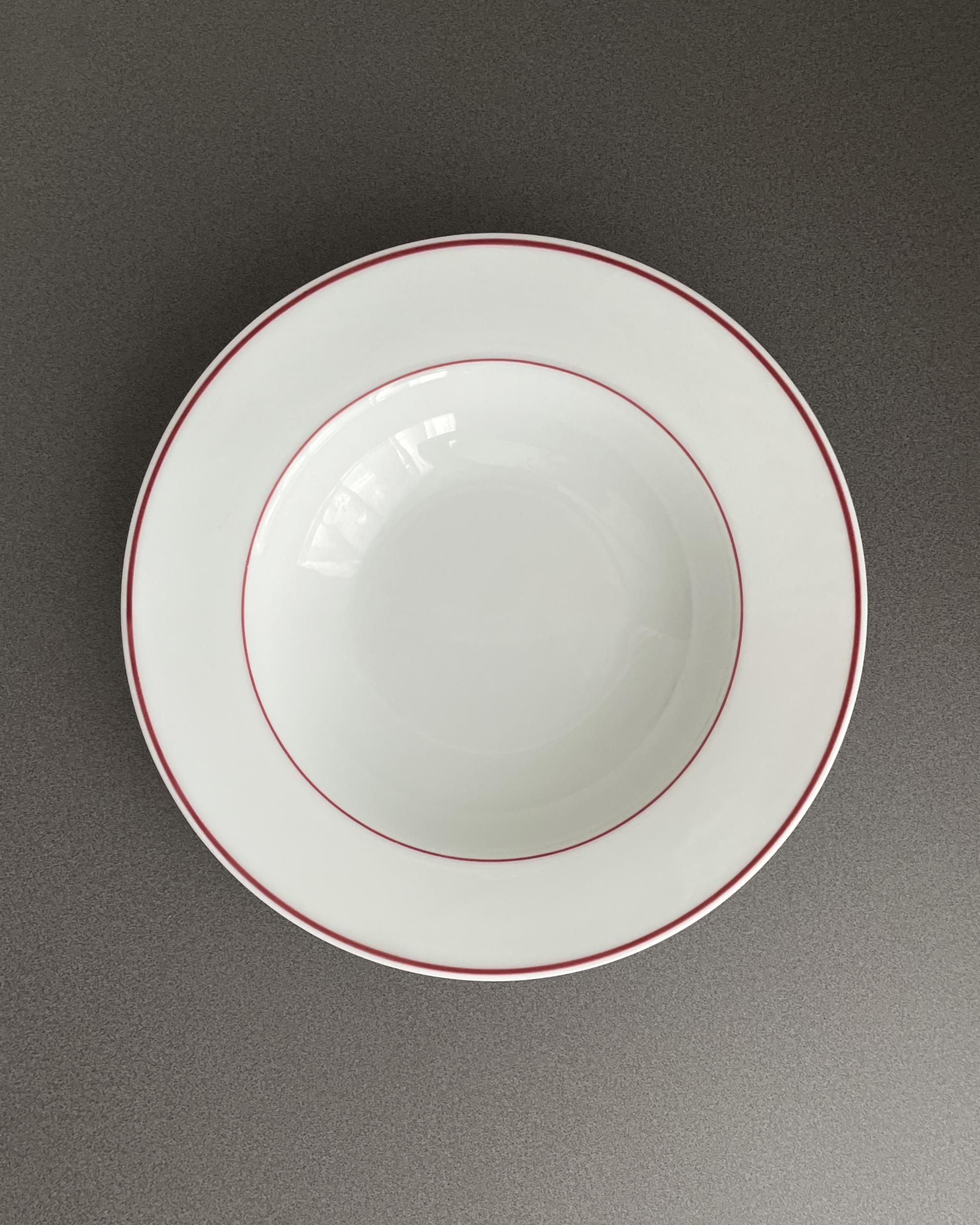 프랑스 Royal Limoges 사의 빈티지 수프 보울입니다. 차가운 톤의 흰색 바탕에 깔끔한 붉은색 테두리 디자인이 매력적입니다.
