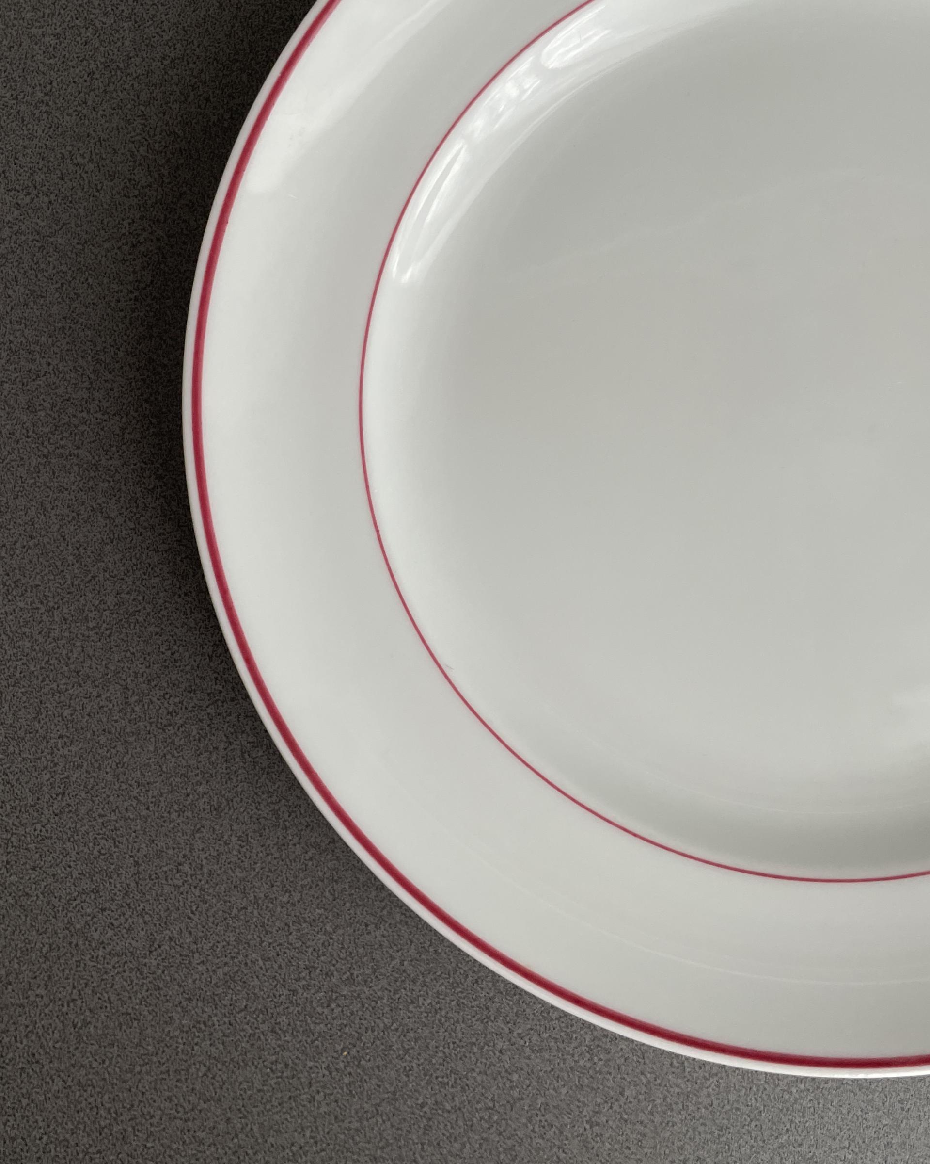프랑스 Royal Limoges 사의 빈티지 사이드 플레이트 입니다. 차가운 톤의 흰색 바탕에 깔끔한 붉은색 테두리 디자인이 매력적입니다.
