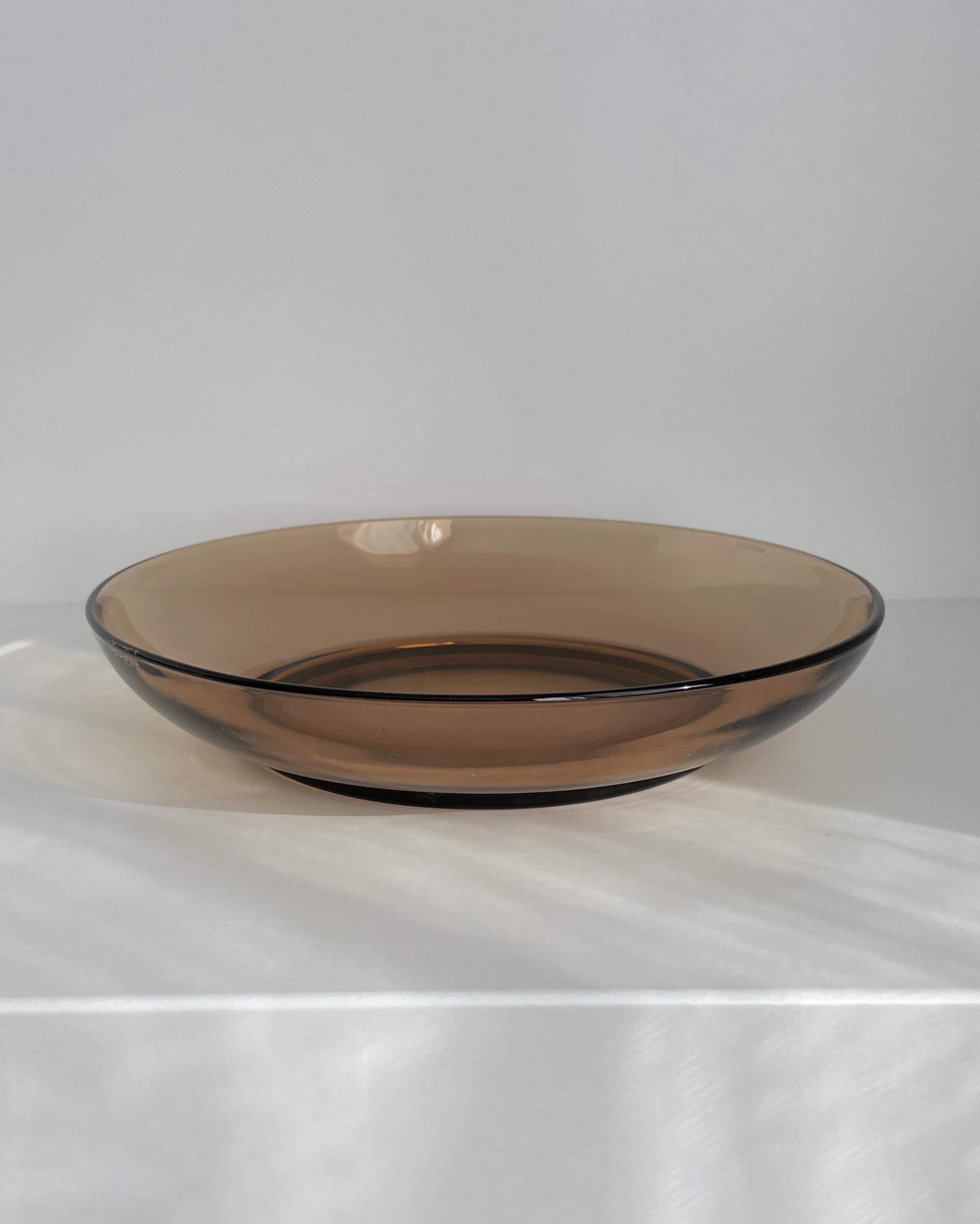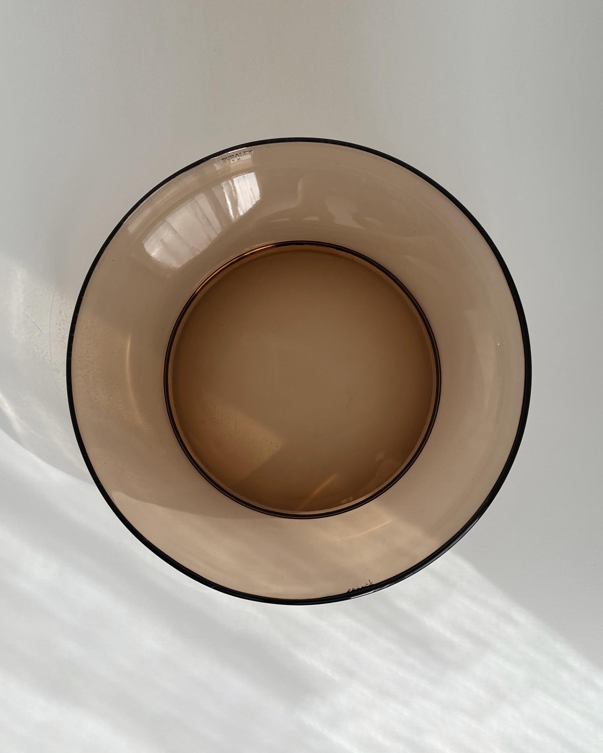 프랑스 Duralex 사의 빈티지 파스타 보울입니다. 맑고 아름다운 갈색빛의 유리가 매력적입니다. 현재는 단종된 색상과 디자인입니다.