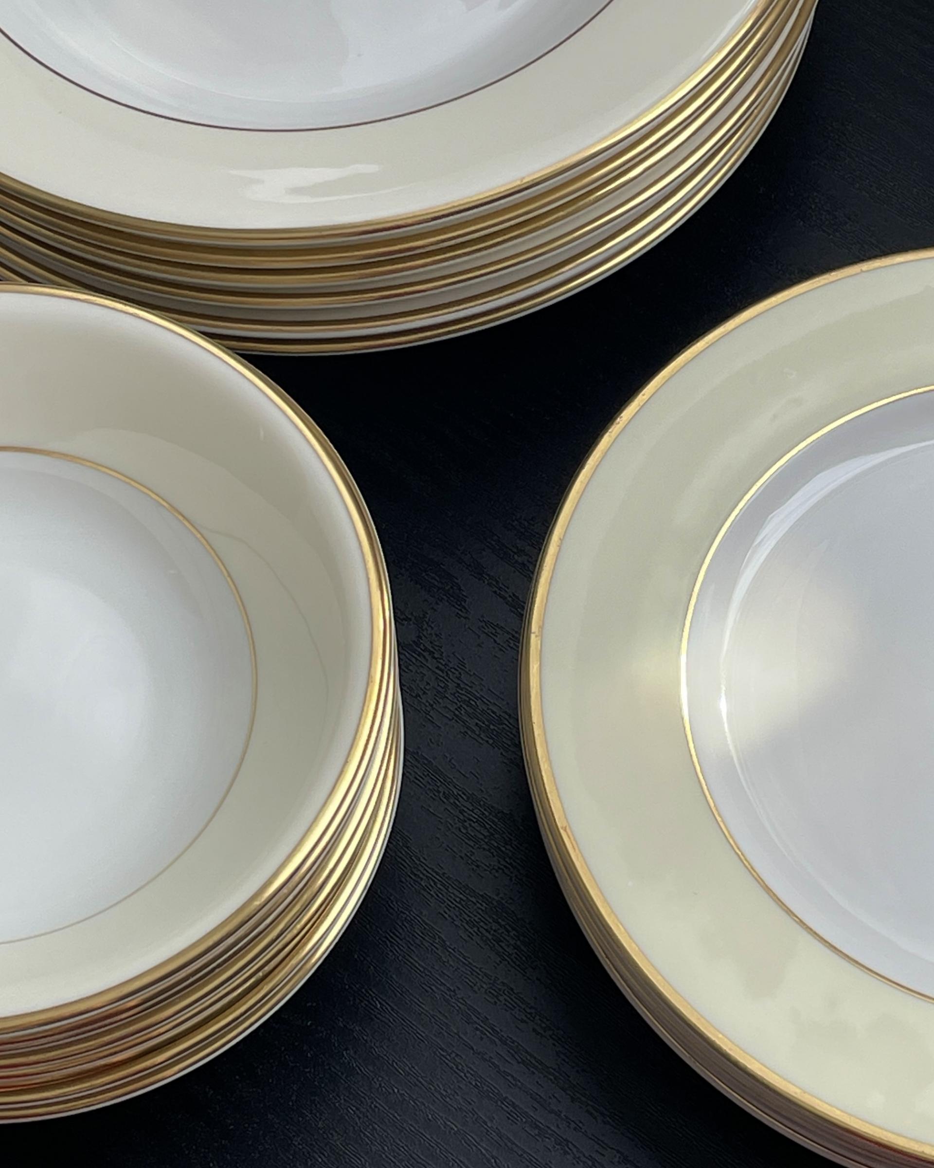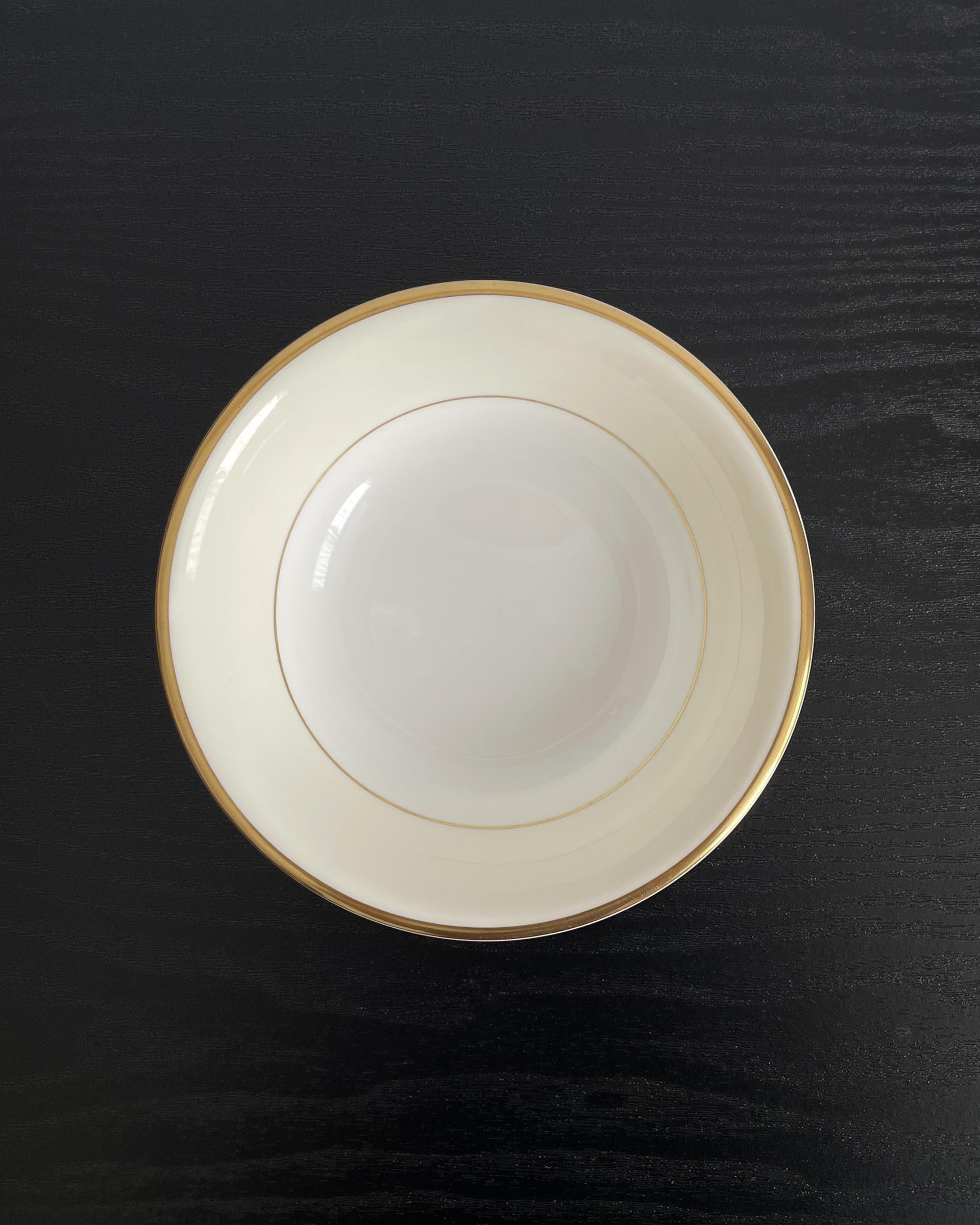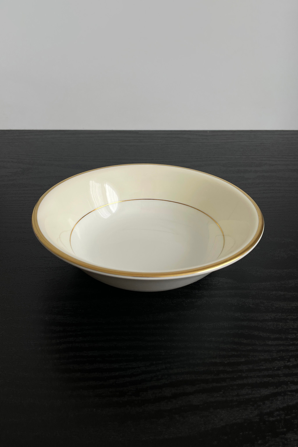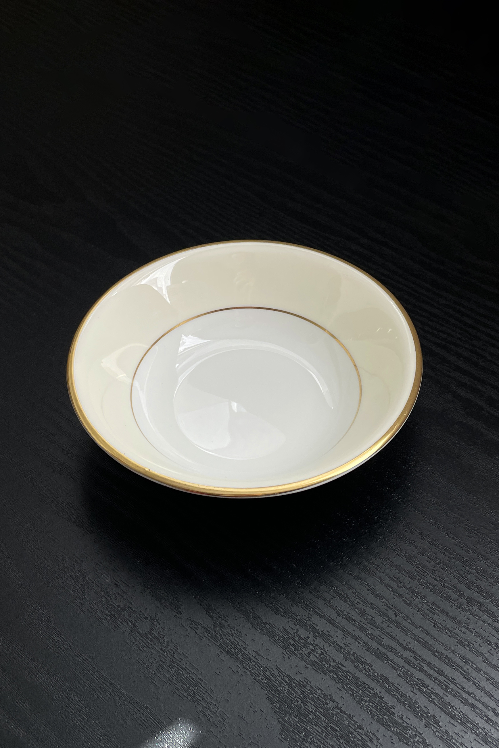 영국 Royal Grafton 사 Elegance 시리즈의 빈티지 디저트 보울입니다. 연한 레몬빛 과 금빛의 테두리와 심플한 디자인의 조화가 아름답습니다.
