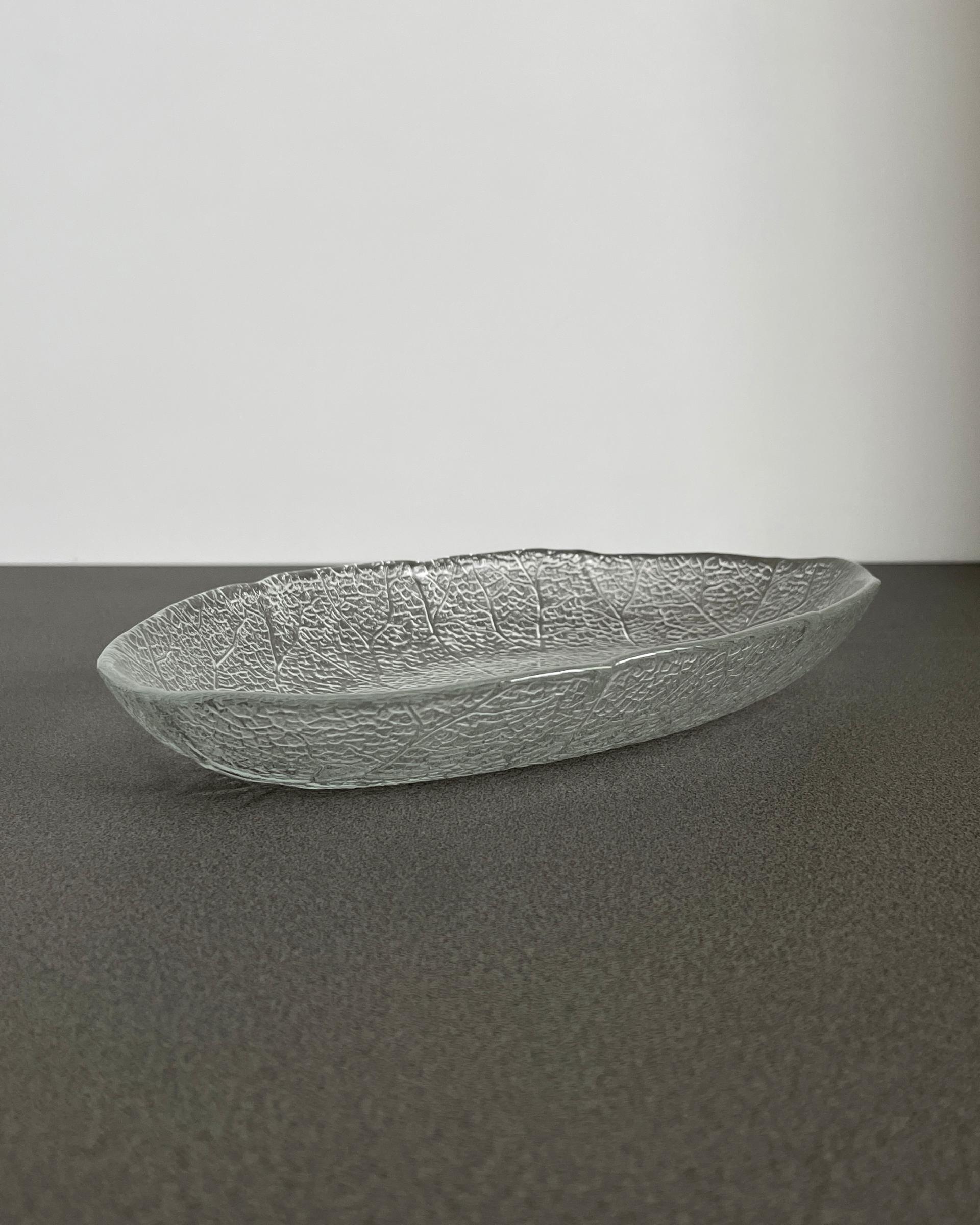 프랑스 Arcoroc 사의 빈티지 글라스 플레이트입니다. 섬세한 나뭇잎 결이 입체적으로 새겨져있어 자연스러운 질감이 아름답습니다.