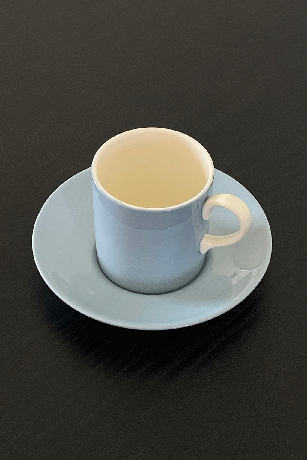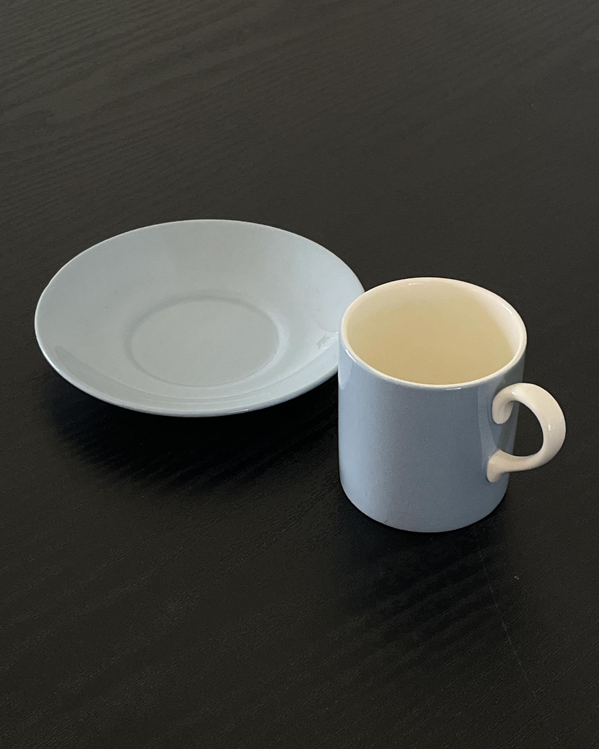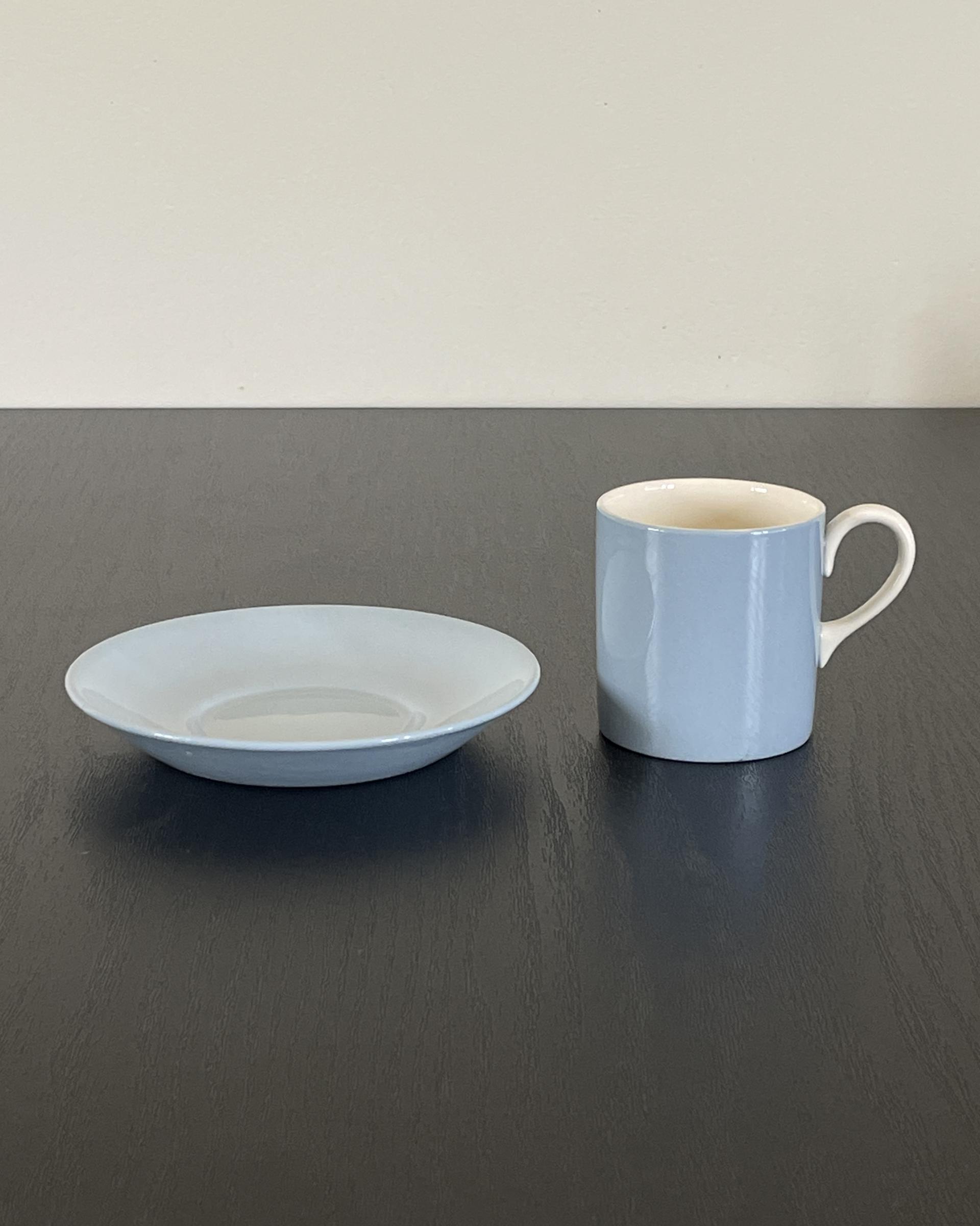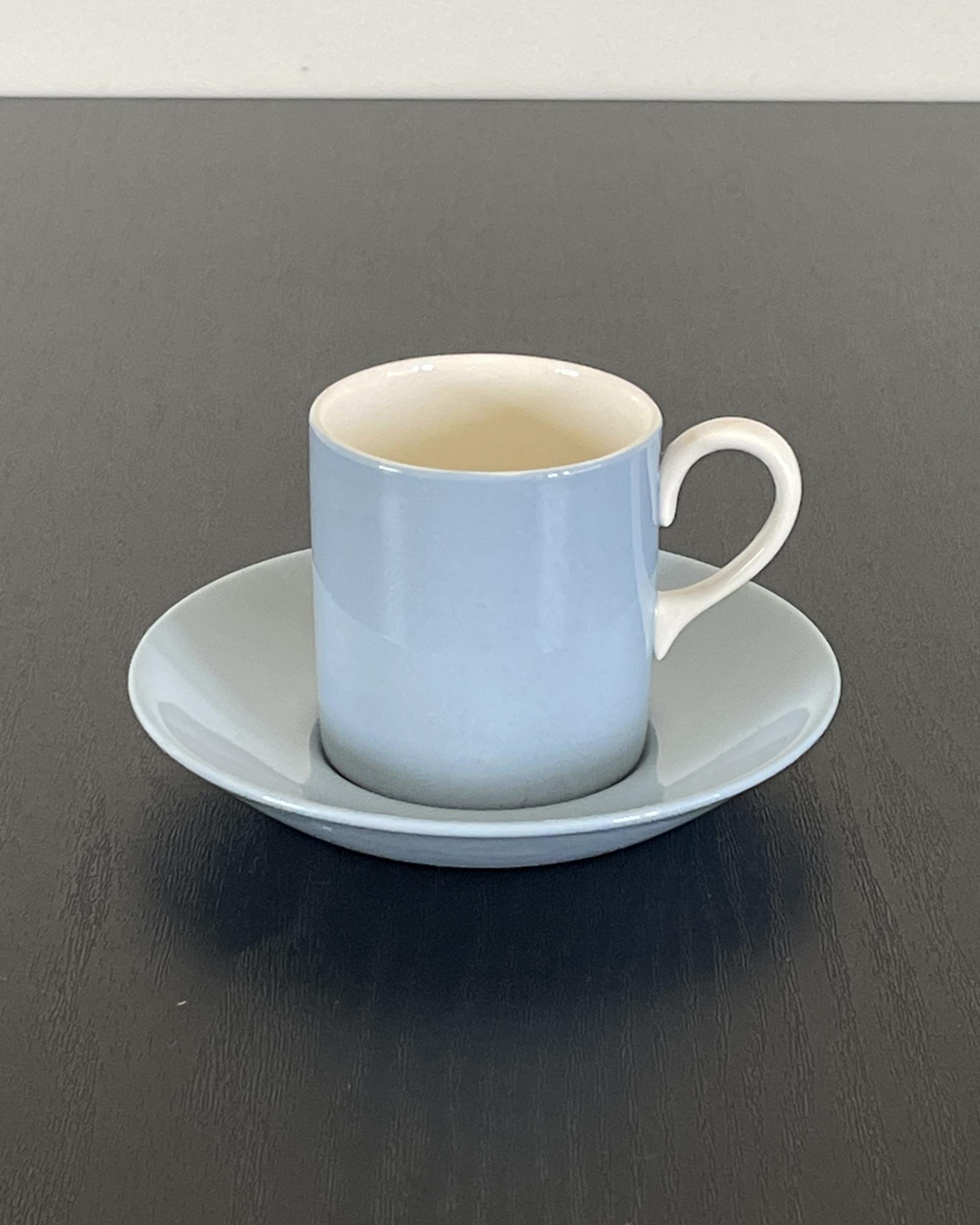 영국 Wedgwood 사의 Summer Sky 시리즈의 빈티지 컵 & 소서입니다. 아이보리 빛이 도는 손잡이와 귀여운 하늘색의 간결한 조화가 아름답습니다. 티팟에 차나 커피를 내려 나눠마실 때, 에스프레소를 마실 때 적당한 크기입니다.