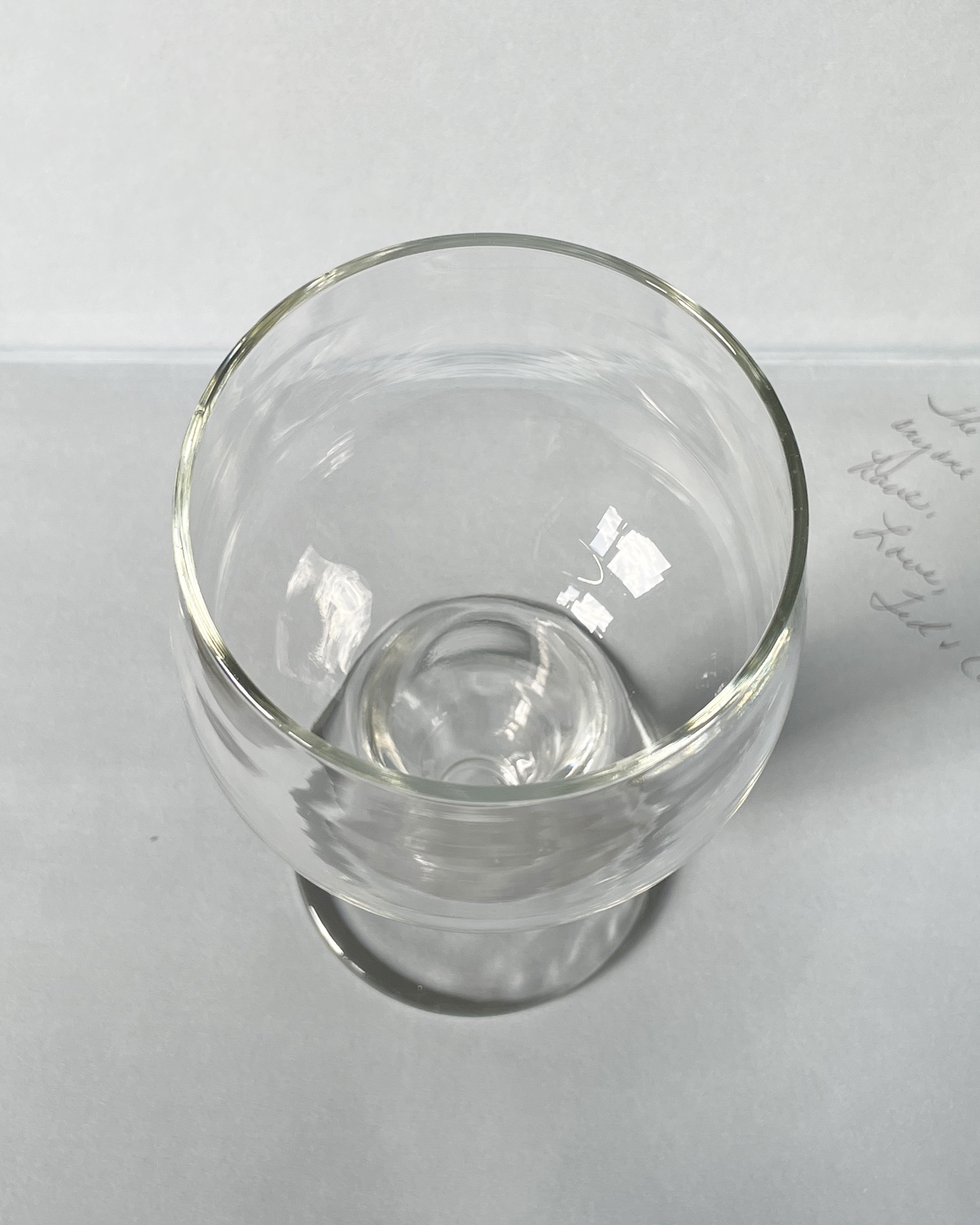 손잡이가 비어있어 음료를 담았을때 더욱 아름다운 빈티지 글라스입니다. 튤립의 꽃봉오리를 연상시키는 잔의 곡선이 아름답습니다.