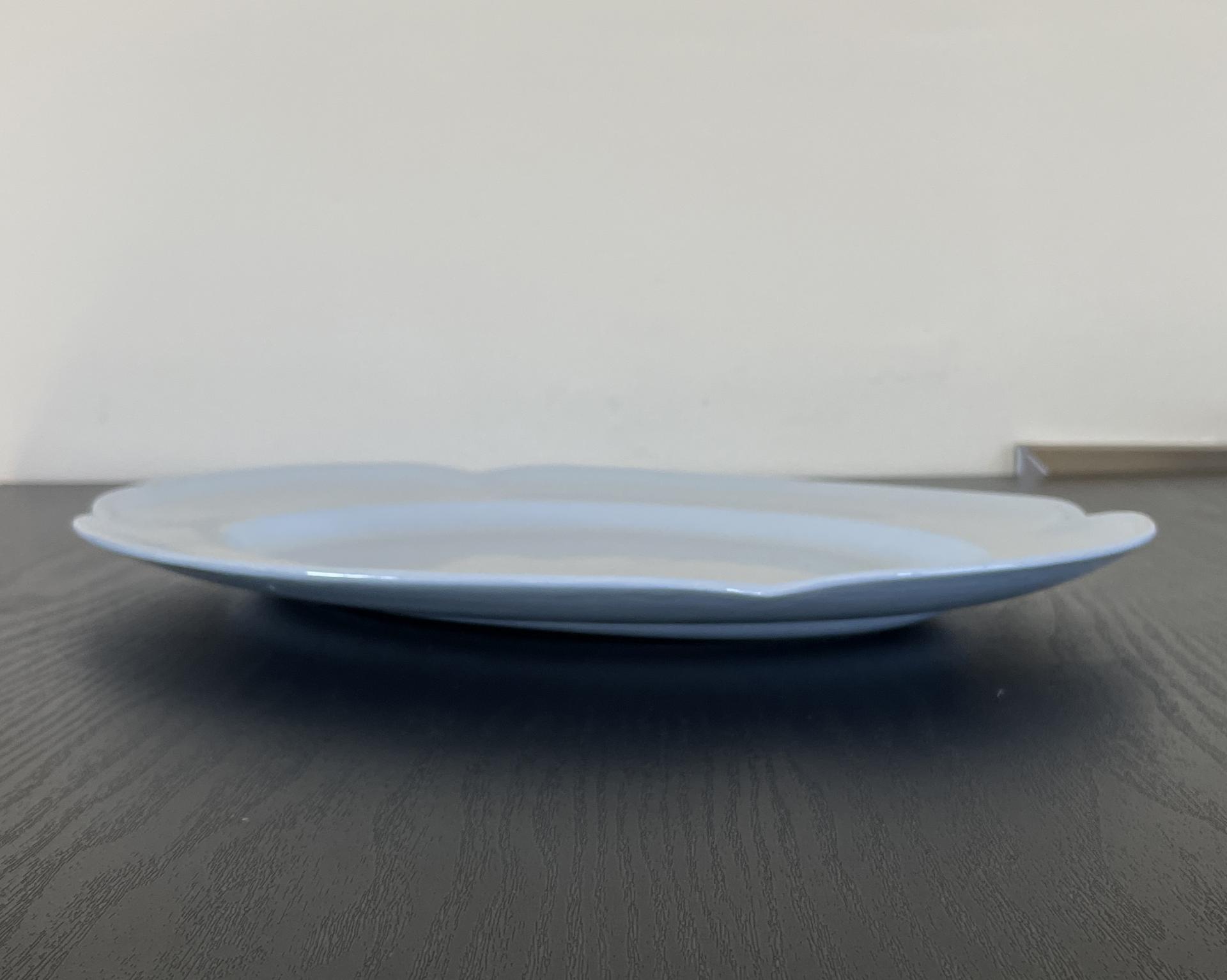 영국 Johnson Brothers 사의 빈티지 타원형 접시입니다. 푸른빛와 회색빛이 함께하는 Greydawn 시리즈로 오묘한 색감과 꽃잎을 연상시키는 접시의 가장자리 디자인이 아름답습니다.