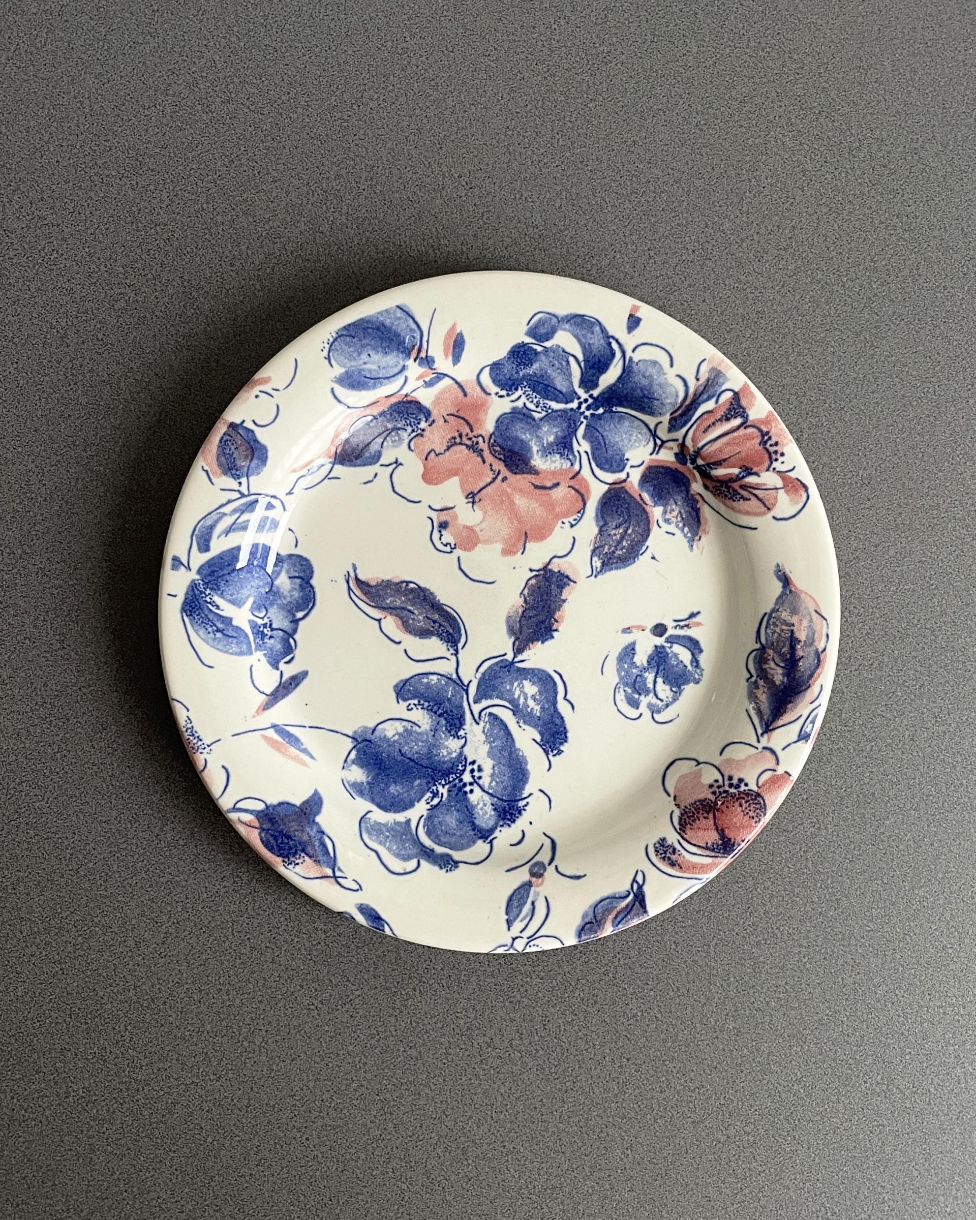 영국 EIT 사의 빈티지 디저트 접시입니다. 밝은 아이보리 톤의 바탕위에 자연스럽고 생동감있게 표현된 큼직한 꽃 패턴이 아름답습니다.