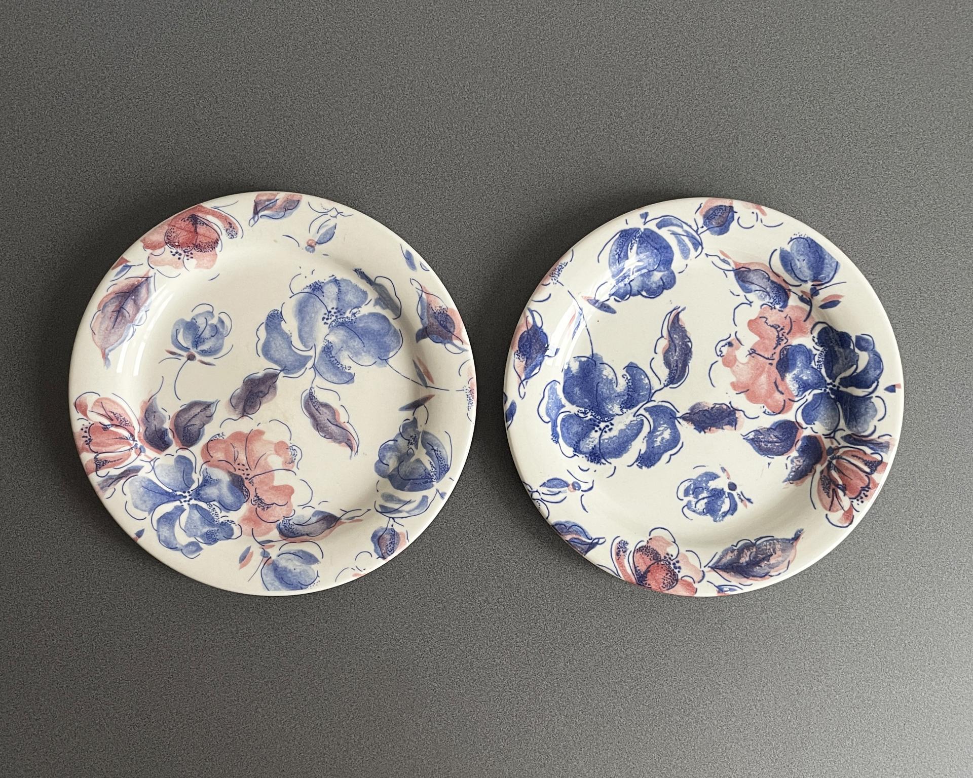 Vintage EIT England Blue & Pink Floral Pattern Dessert Plate (175mm)